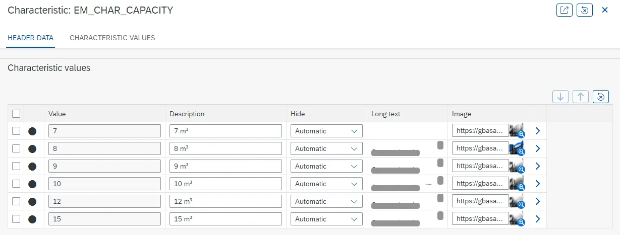 | Long text | You can add a long text of the characteristic using this free text field. Display Long Text for Characteristic |