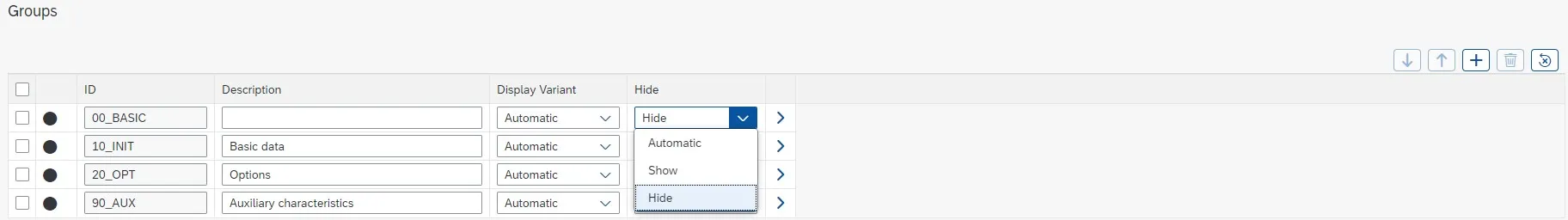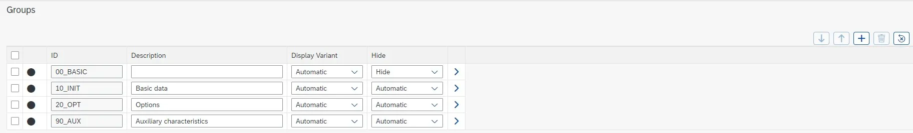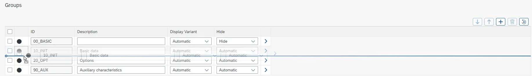icon is displayed next to the characteristic name. This is not possible with all display variants. A list of which combinations of display variant and integrated long text are possible can be found in