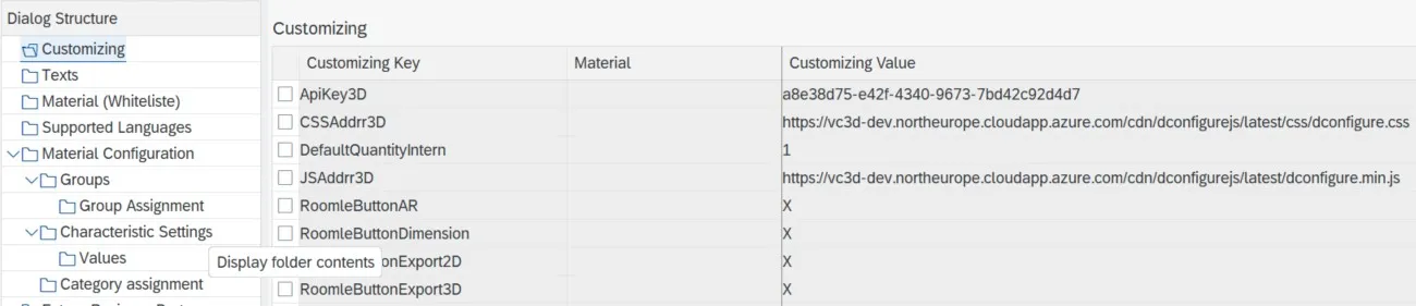 /TVC/VC_BO_CONF_CUST – Dialog Structure Material Configuration