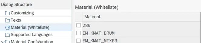 /TVC/VC_BO_CONF_CUST – Dialog Structure Material-Inclusion-List
