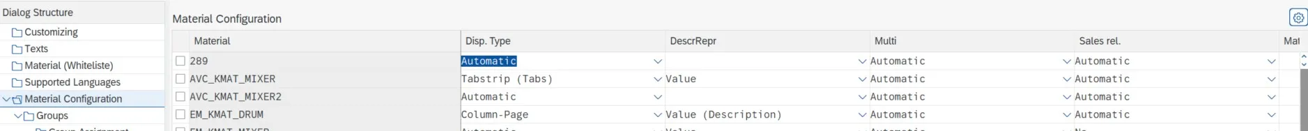 This list is only considered when the attribute materialAllMatNrRelevantForConfiguration is not activated in the maintenance view “/TVC/VC_BO_CONF_GLOBAL”.