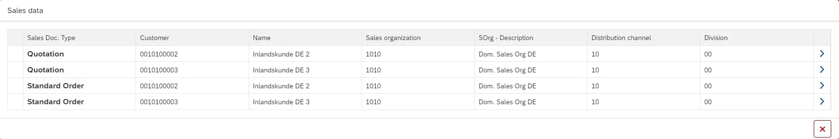 The shopping cart is created with the sales document type and in the maintained distribution channel (sales organization, distribution channel, division) for the corresponding external business partner. This selection is defined each time using a pop-up window after the initial screen. The external business partner can always change this selection as long as the shopping cart is empty. From the moment a product is added to the shopping cart, this is no longer possible.