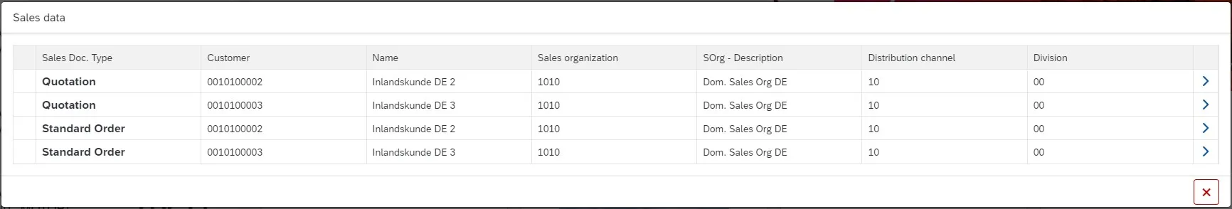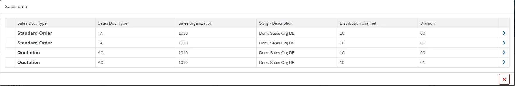 Pop-Up Window Selection Sales Data External Business Partner