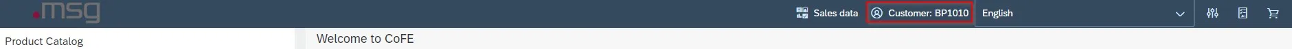 When you access msg.Variant CoFE with the shopping cart function, the system asks you to select which customer and which sales document type you want.