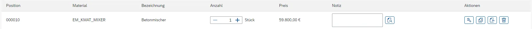 After clicking on the order button, a customer order or quotation is created in the SAP Backend.